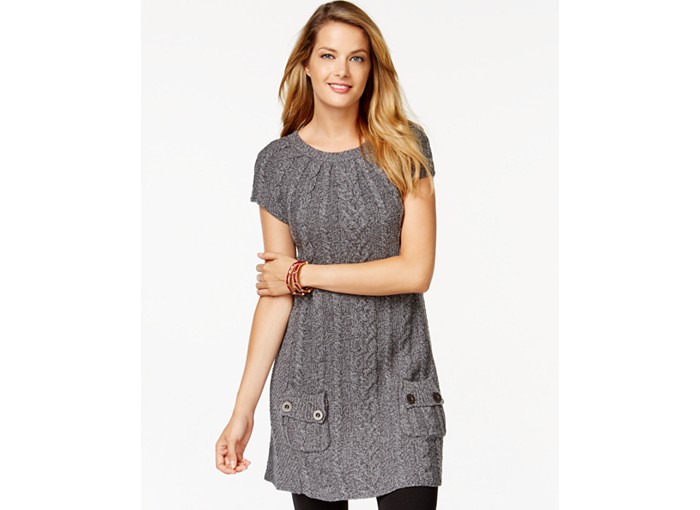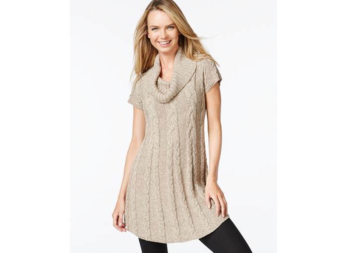 Here are two body conscious chunky knits that aren’t so chunky! I like these because the cut gives some flow and the shorter sleeves do not overpower the proportions. They would look great worn with a long sleeved shirt underneath.