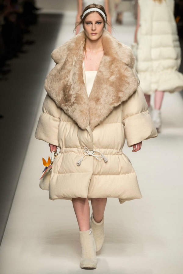 For Puffer Coats, this runway coat was obviously made for artistic effect. Look for coats with a cinched waist and a thinner line. I think Nat from Trendy Taste shows how a puffer coat can look sleek and stylish!